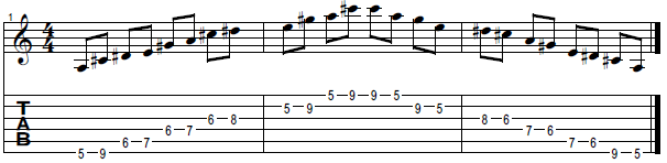 Aplique esta escala sobre um A7 (blues/rock/funk/country).